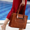 Elegant Brown Leather Laptop Tote Bag for Women – Stylish, Durable, and Functional